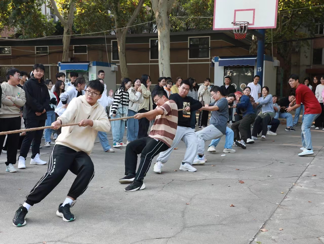 为进一步展现大学生积极向上的精神风貌,增强团结合作精神,提高新生的融入感和校园归属感,10月14日上午,91a片 于文化路校区东北角篮球场举办2023级“迎新杯”新生拔河比赛,辅导员冯杰、全体助理班主任和23级全体学生参加比赛。