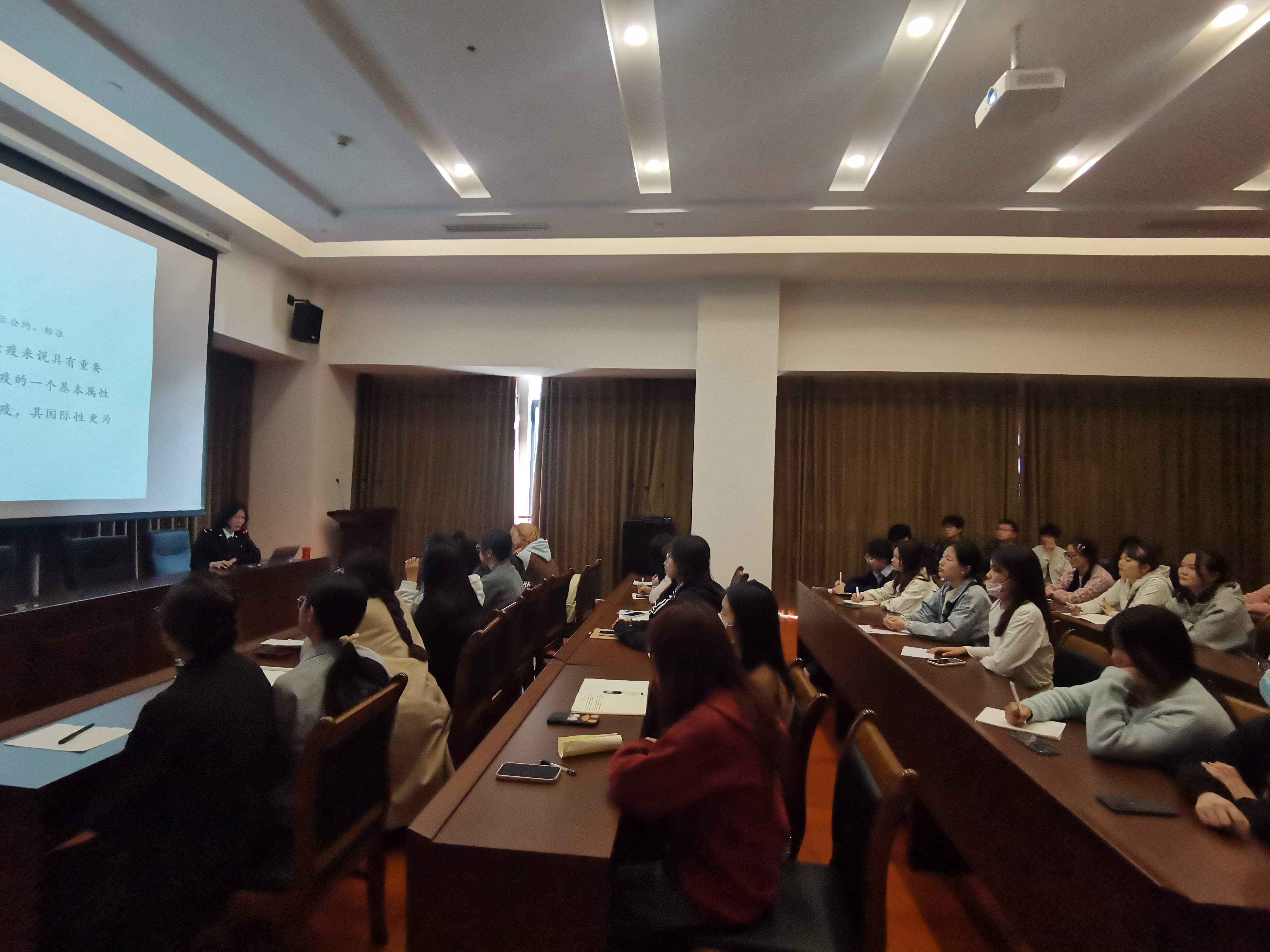 抵达郑州海关技术中心后,同学们首先参观“海关队伍授衔20周年书画展”,对海关制度的建立有了初步的了解。随后在二楼会议室听取了海关知识讲座,讲座由郑州海关技术中心正高级兽医师苗丽担任主讲,苗老师从境外出口隔离场认可、检疫审批、国外预检、现场检疫、隔离检疫、实验室检验、检疫处理、鉴证放行、动植物检疫特性等九个方面,将郑州海关技术中心的主要工作内容和场景进行了详细展示,进一步加深了同学们对海关的认识。