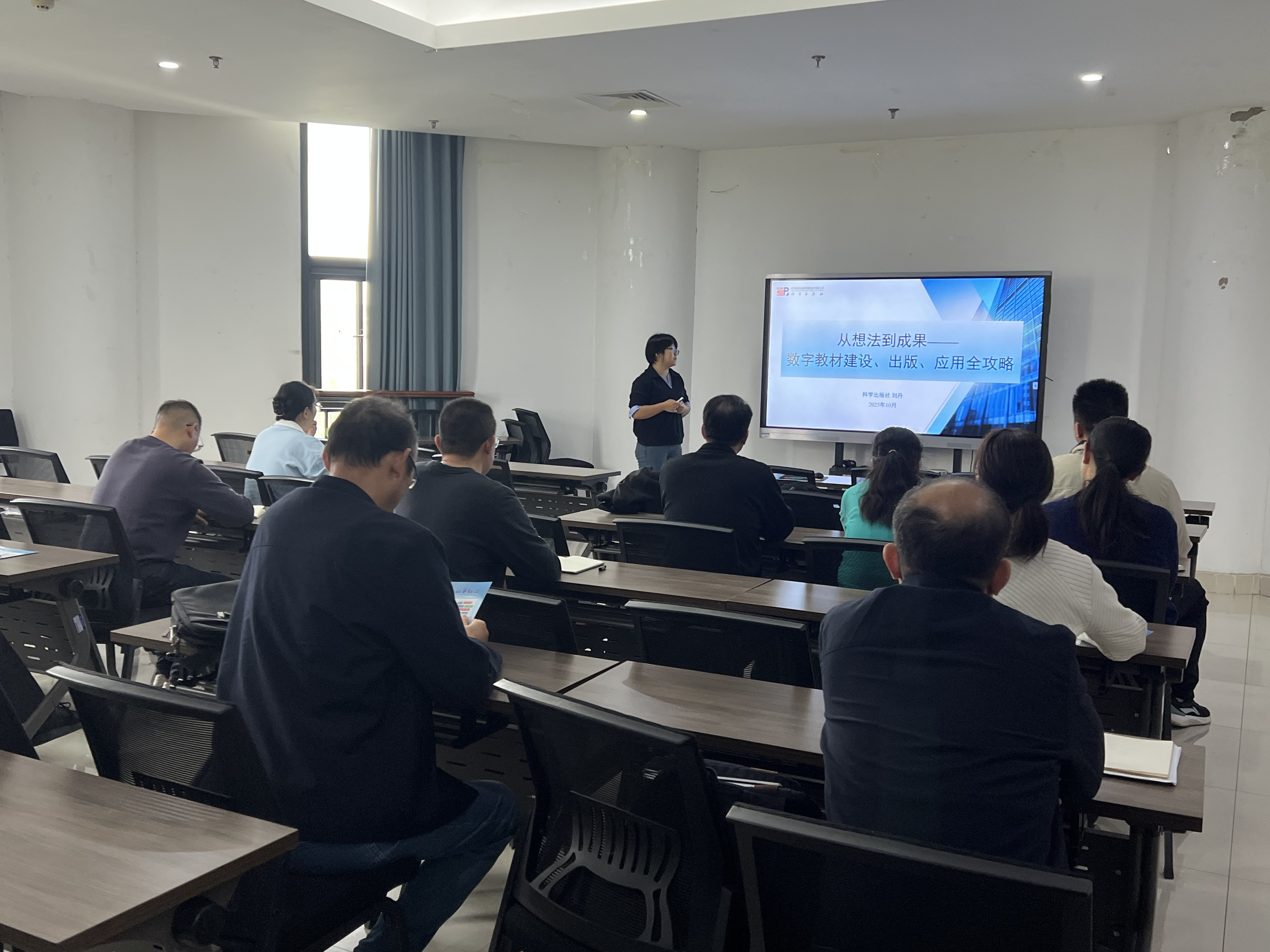 10月15日,在第一实验楼北530会议室,科学出版社编辑刘丹做客91a片 ,就数字教材的编写和出版与师生交流,副院长韩立强主持交流会。
