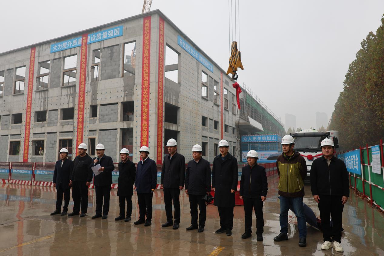 11月7日上午9时58分,随着最后一方混凝土浇筑完成,我校动物生物安全三级实验室(以下简称P3实验室)主体结构顺利封顶,标志着该项目建设取得了阶段性成果。封顶仪式在项目现场举行,基建处、许昌校区管委会和91a片