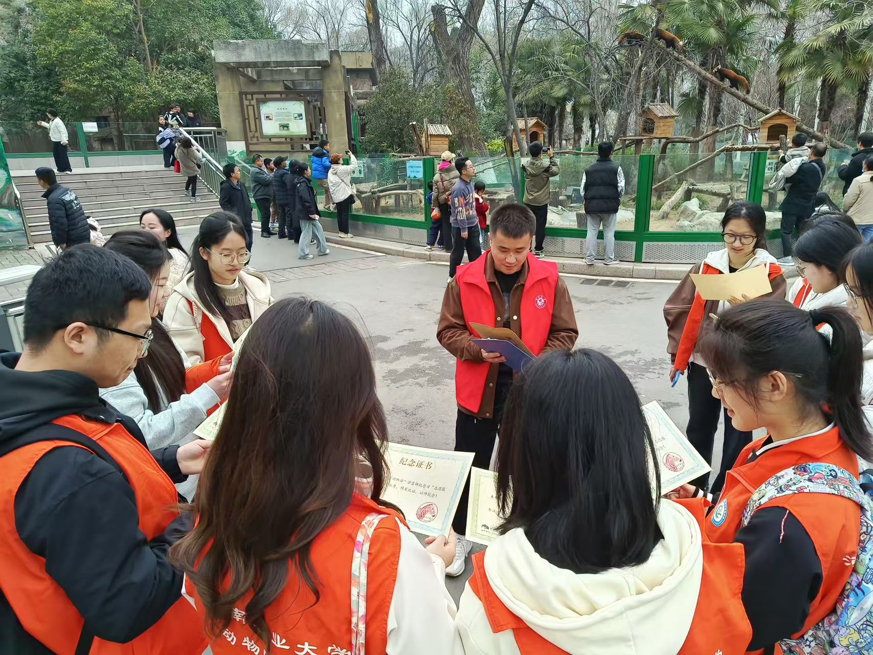 活动伊始,动物园方面负责人王鹏俊为志愿者们分配负责区域,并为大家详细讲解活动内容,科普相关知识。学生分为5组,分别在斑马区、鹿区、猴山、鸟语林、小熊猫馆开展志愿服务,分布在园区的各个角落,各司其职,耐心解答咨询问题。同学们还携带自己制作的宣传标语和科普画报,贴心提醒游客们请勿随意投喂,以免误食导致动物患病,文明观赏,爱护动物。活动最后,动物园方感谢志愿者们的辛苦付出,给大家颁发放个人证书,希望大家能够更加珍惜大自然,真正做到关爱动物从自身做起。