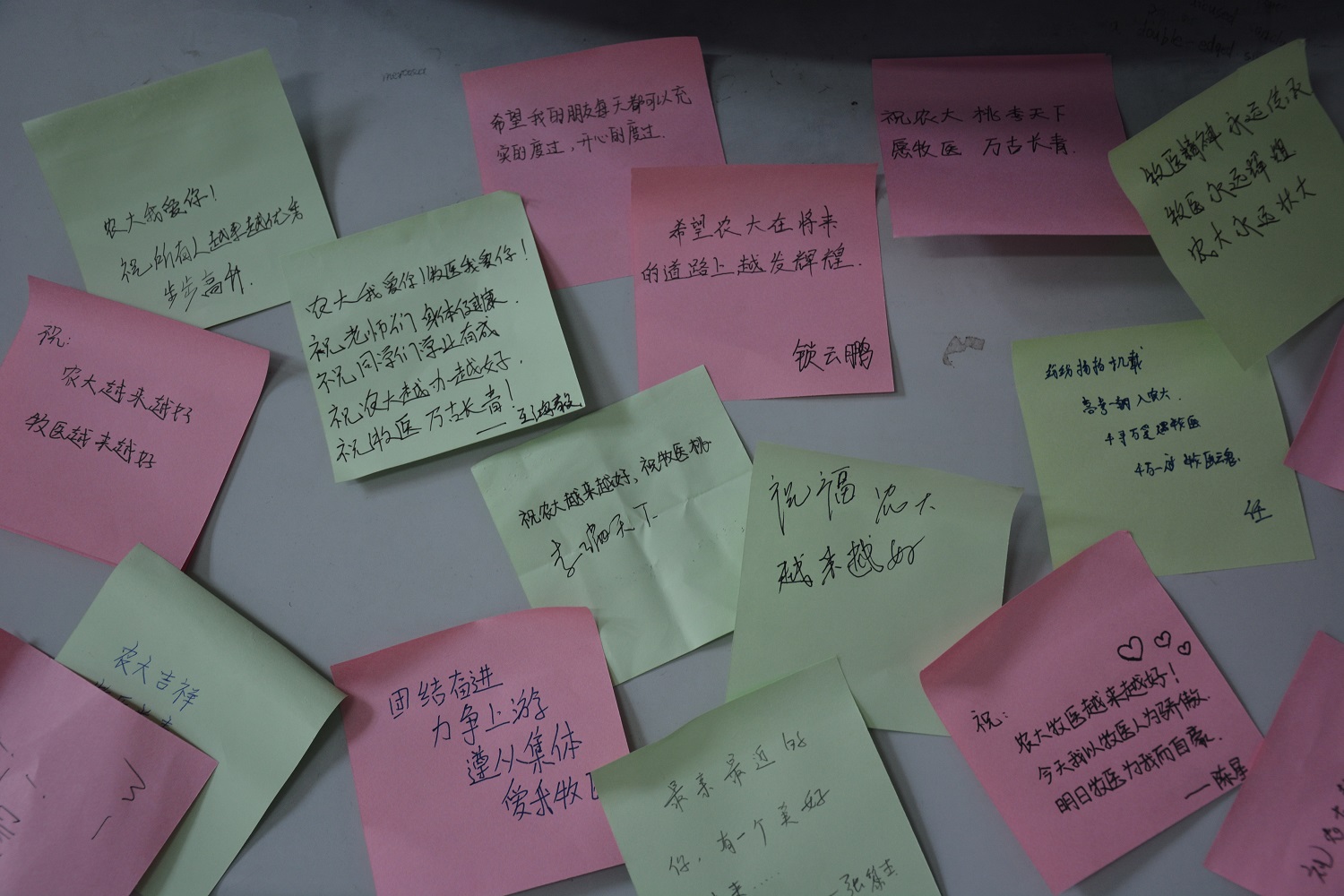 活动现场,主持人首先带领全体成员反省自问,在大学四年期间是否用心学习专业知识,是否时时处处心系父母之苦,是否时时坚守责任,以此希望毕业生能够不断审视自身,修正身心。随后,现场人员一起观看了全国十大杰出青年、首届全国道德模范获洪战辉的感人事迹,共同朗诵了经典——《出塞》。最后,大家共唱《感恩的心》,并纷纷在纸上写下对母校的感言与祝福。毕业生王鸿毅说到:“农大,我爱你;牧医,我爱你!我将怀着感恩之心走向社会,定不辱使命将所学回报社会!”