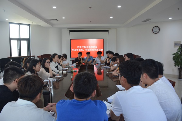 于龙子湖校区第一实验楼北430会议室召开了牧医工程学院2018届毕业生党员、毕业生代表座谈会。院党委副书记牛娟、组织员来卓、教学干事陈宇以及2018届毕业生党员、代表参加了会议。会议由牛娟主持。