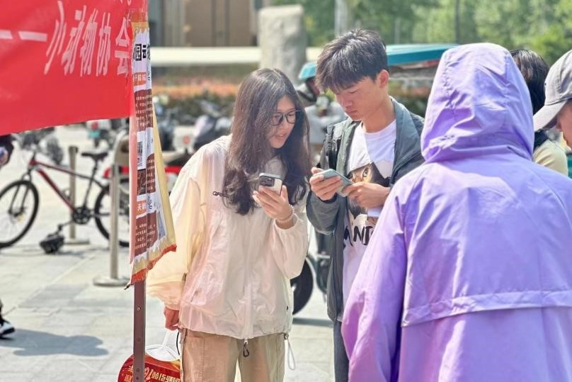 小动物协会于龙子湖校区一餐厅门口举办了“关爱校园动物”活动。协会部分成员参加活动。