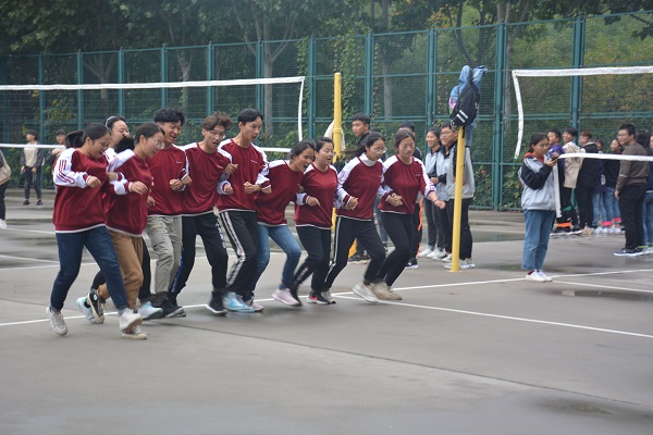 篮球赛中,新生以专业为单位组队6支,两两对阵,参赛队员精神饱满、斗志昂扬,赛场边啦啦队员呐喊助威、不绝于耳,比赛如火如荼;趣味运动会中绑腿走、跳绳接力赛、乒乓球接力赛、拔河比赛各项均人头攒动,趣味十足,热闹非凡。
