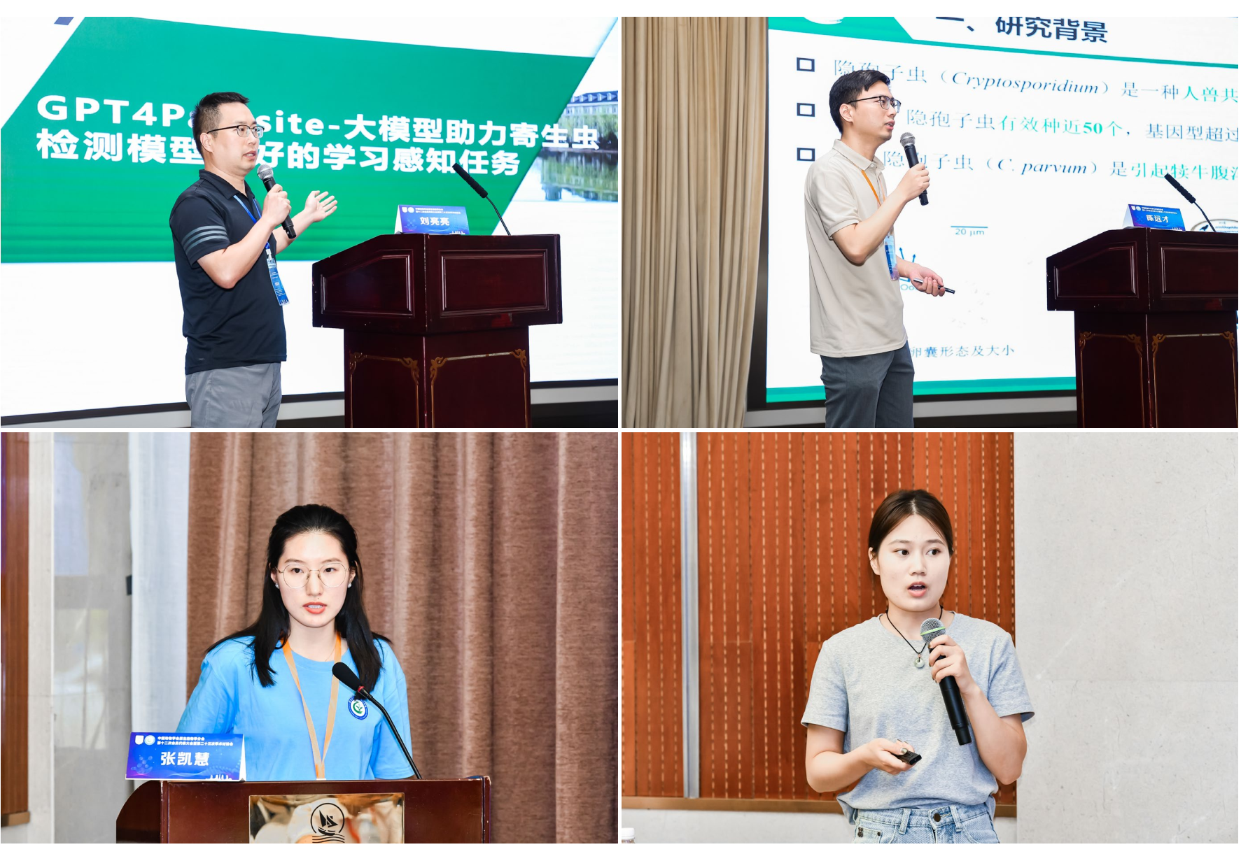 本次学术讨论会共收到论文摘要295篇,大会共设6个大会报告,63个普通报告和46个研究生报告。报告人就学科前沿技术和发展趋势动态以及取得的学术研究成果与参会代表进行了深入交流和讨论。另外,还有82位代表以墙报形式向大家展示了各自最新的研究成果。我校王荣军教授、刘亮亮教授、陈远才博士、张凯慧博士生分别在大会和分会场做了学术报告,单卵囊基因组学技术和原虫基因组分析、智能兽医检测动物寄生虫感染方面的研究,引起与会者的较大兴趣。