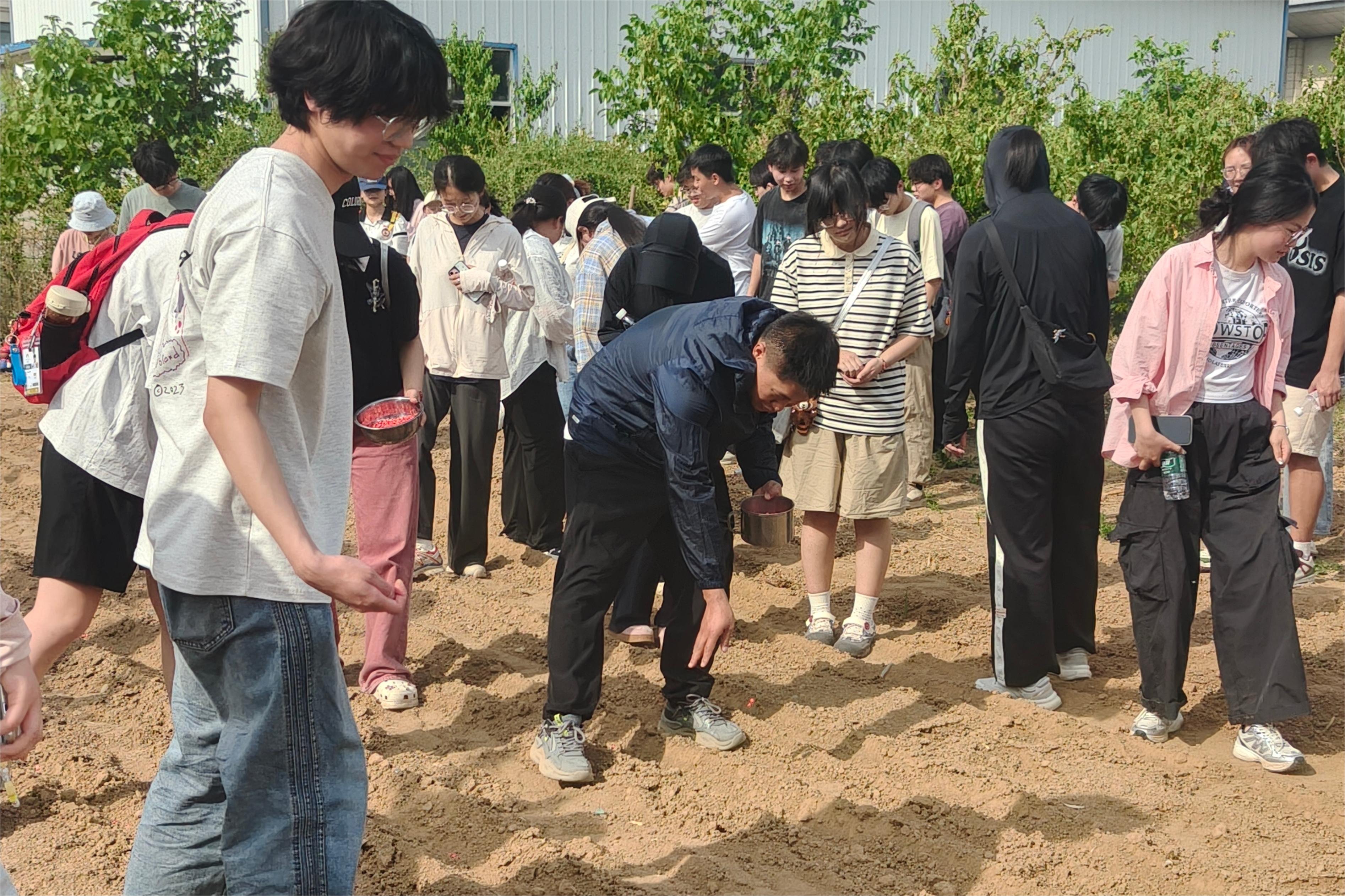 最后,同学们在基地农田中开展饲用玉米种植体验,分组完成了土地翻耕、精准播种、覆土保墒等农事操作,亲身体验劳作的艰辛,深刻领悟“耕以养身,读以明道”的育人真谛。