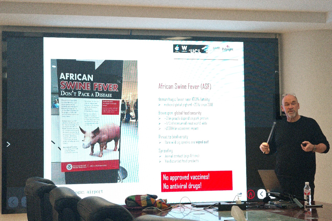 Finn Werner教授是基因表达调控领域的国际权威,其团队“RNAP实验室”以跨学科研究闻名。本次报告中,他系统展示了团队在非洲猪瘟病毒(ASFV)转录系统研究中的突破性进展,包括非洲猪瘟病毒基因组特征解析,重组RNAP技术突破,和跨物种进化启示等。Werner教授特别指出:“ASFV RNAP可能成为广谱抗病毒药物的靶点,这一发现为动物疫病防控提供了全新视角。”