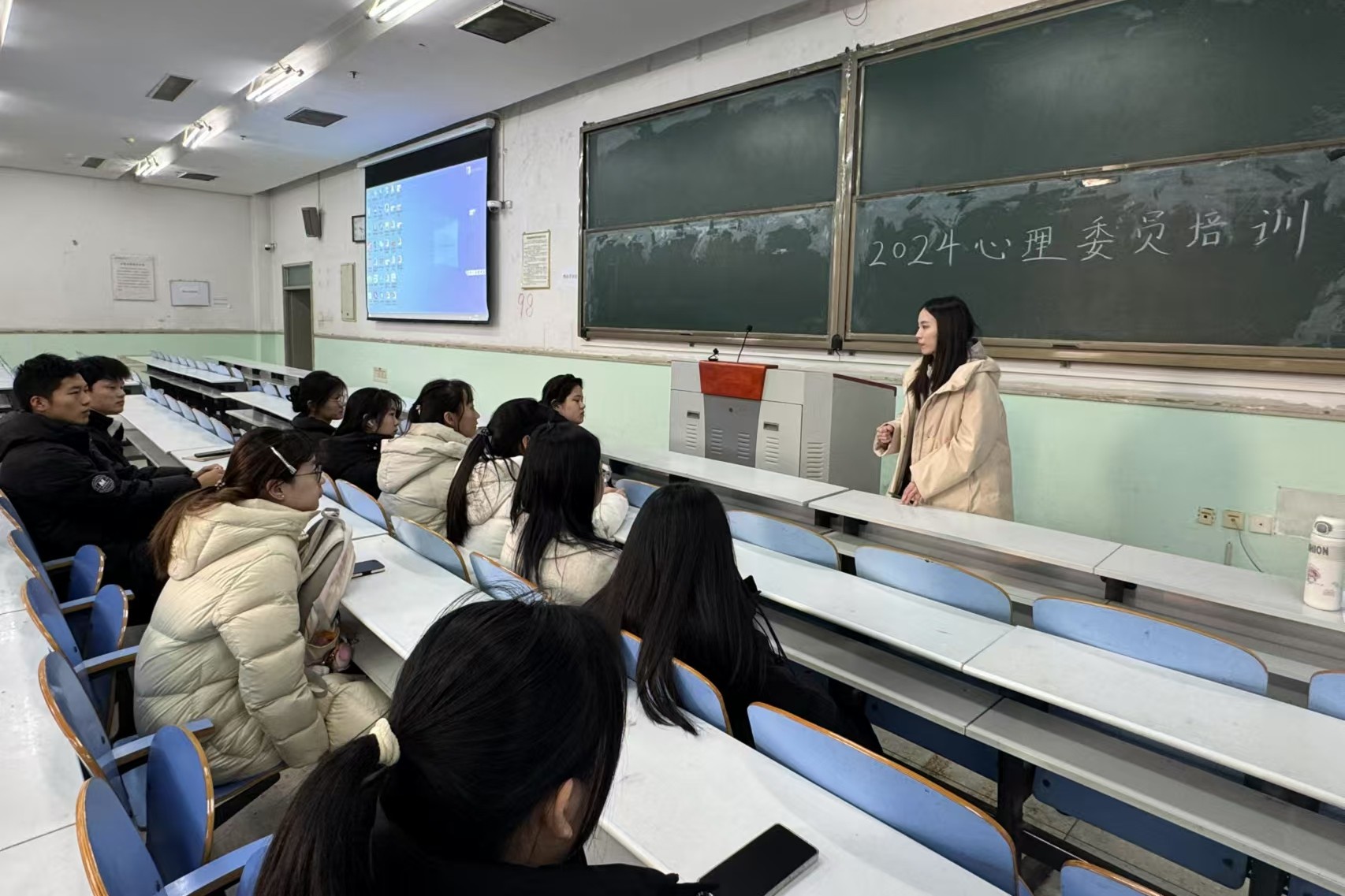 与信息与管理科学学院在文化路校区工程楼101教室共同举办心理委员培训会。校心理健康教育中心专职老师常丽老师应邀出席培训,全体24级心理委员、全体班委和宿舍长参加培训,会议由24级辅导员冯佟主持。