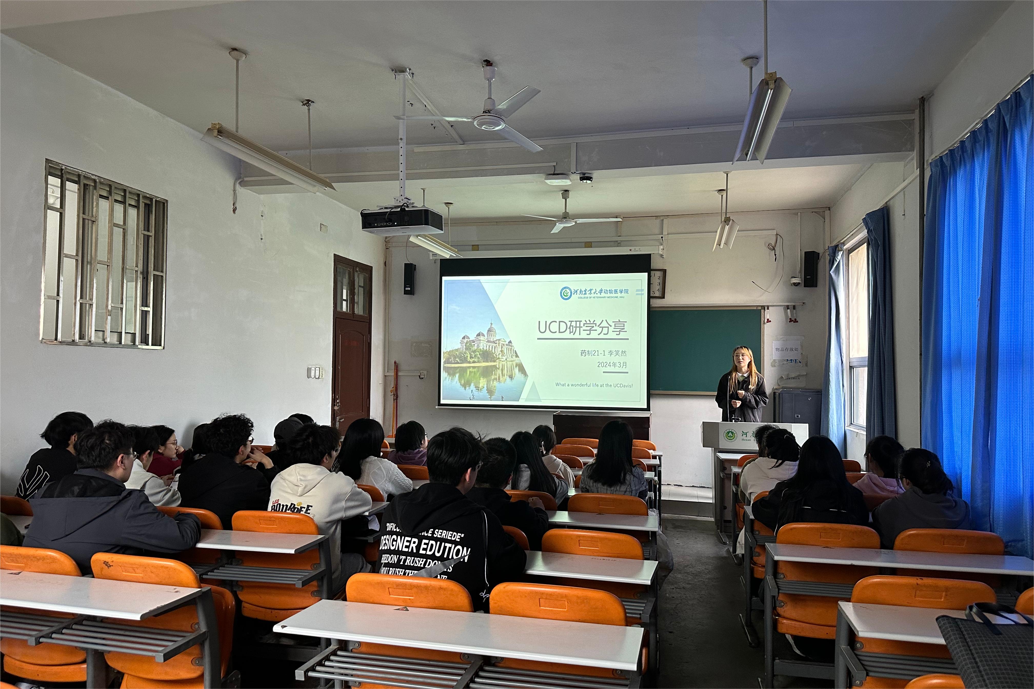 23级各班级陆续开展加州大学戴维斯分校(UCD)研学经验交流分享主题班会,各班班会邀请了范明夏、朱玉涛、康云哲、李阳、刘一和李笑然六位同学分享寒假研学经历,班会由各班班主任主持。
