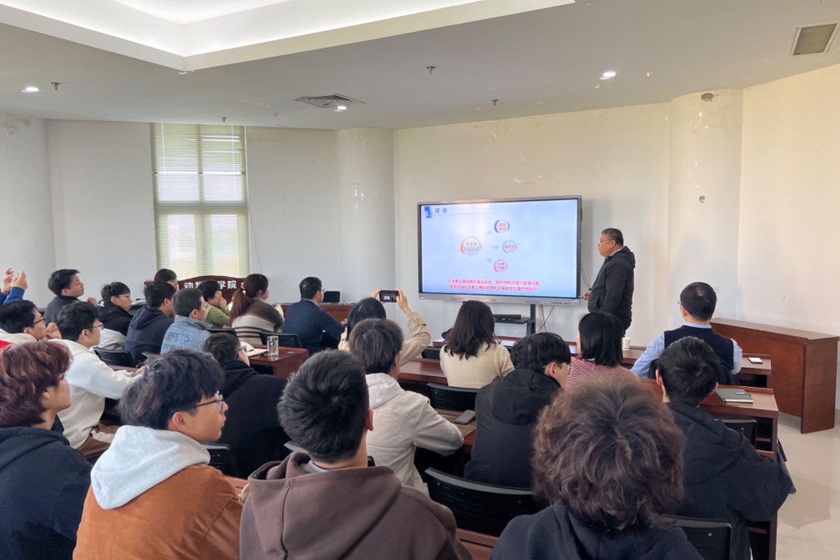 动物药学专业本科生讲授《兽药行业与产业导论》课程,学院部分教师及研究生到场听课。