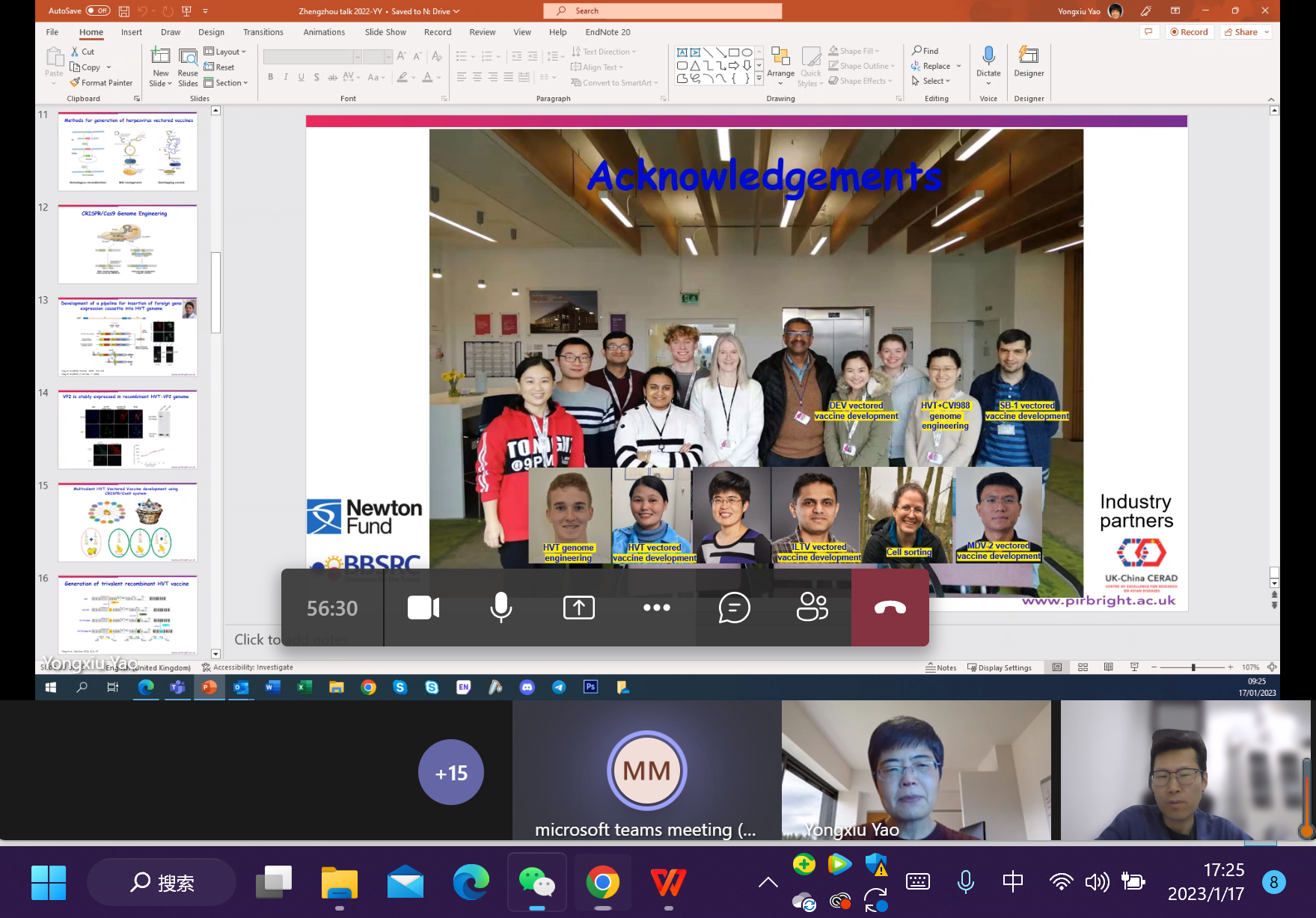 2023年1月17日下午,英国Pirbright研究所病毒肿瘤学实验室group leader,博士生导师姚永秀教授,通过Teams在线会议以《Genome editing of avian herpesviruses for recombinant vaccine development》为题做学术报告,