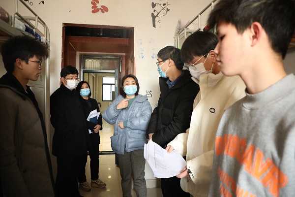 领导与同学们亲切交谈,面对面了解学生返校思想动态,仔细倾听同学们寒假经历,叮嘱同学们积极调整心态,尽快融入新学期生活。廖仲磊表示,新的学期希望同学们做好自身疫情防控的同时生活上自理、管理上自治、学习上自觉、目标上自我选择、思想上自我加强,情操上自我陶冶,望来日能宏图如鲲鹏展翅,一飞冲天。