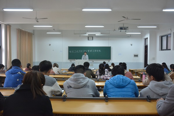 于龙子湖校区繁塔楼D206教室召开学生班级管理工作会议,辅导员陈翔出席会议,2016、2017、2018级各班班长及团支书参加会议。
