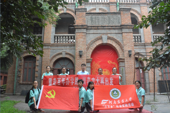 暑期社会实践团队也组建了5支“重走办学路”团队分赴郑州、栾川潭头镇,进行走访调查。栾川潭头镇团队一行9人来到河大抗战时期办学纪念馆参观学习,了解到“潭头惨案”的经过。郑州团队一行12人通过参观校史馆、走访路人挖掘探索校园历史以及观看纪录片来进一步探寻学校悠久的历史。
