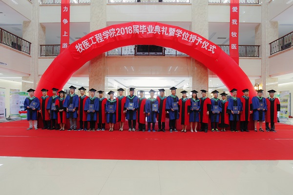 毕业典礼在雄壮的国歌声中拉开序幕。随后,伴随着《绿色颂》的旋律,院领导与学位委员会成员为毕业生一一拨正流苏,颁发硕士、学士学位证书并合影留念。