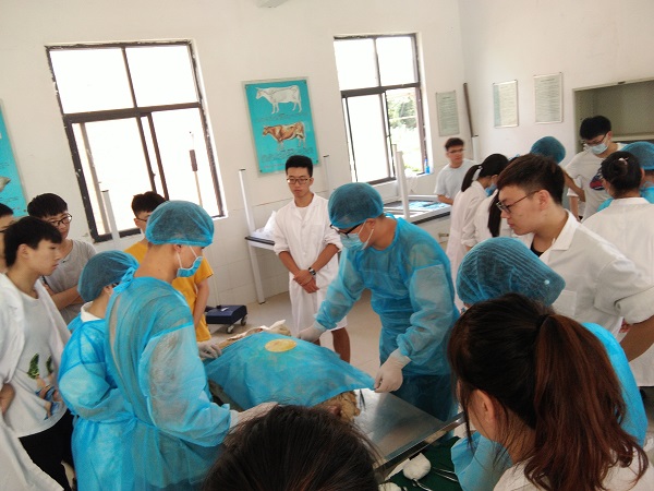 学院领导高度重视此次教学实践活动,为学生提供了良好的住宿环境和生活条件。到达实习基地后,首先带领学生参观、了解许昌教学实践基地的历史文化以及学院近年来在实践基地建设方面所取得的成绩。随后带领学生准备实验器材并开展了为期4天的外科手术实践课程,内容包括全身麻醉、羊瘤胃切开术、犬子宫卵巢摘除术、去势术和肠管切除与吻合术等5个实验。